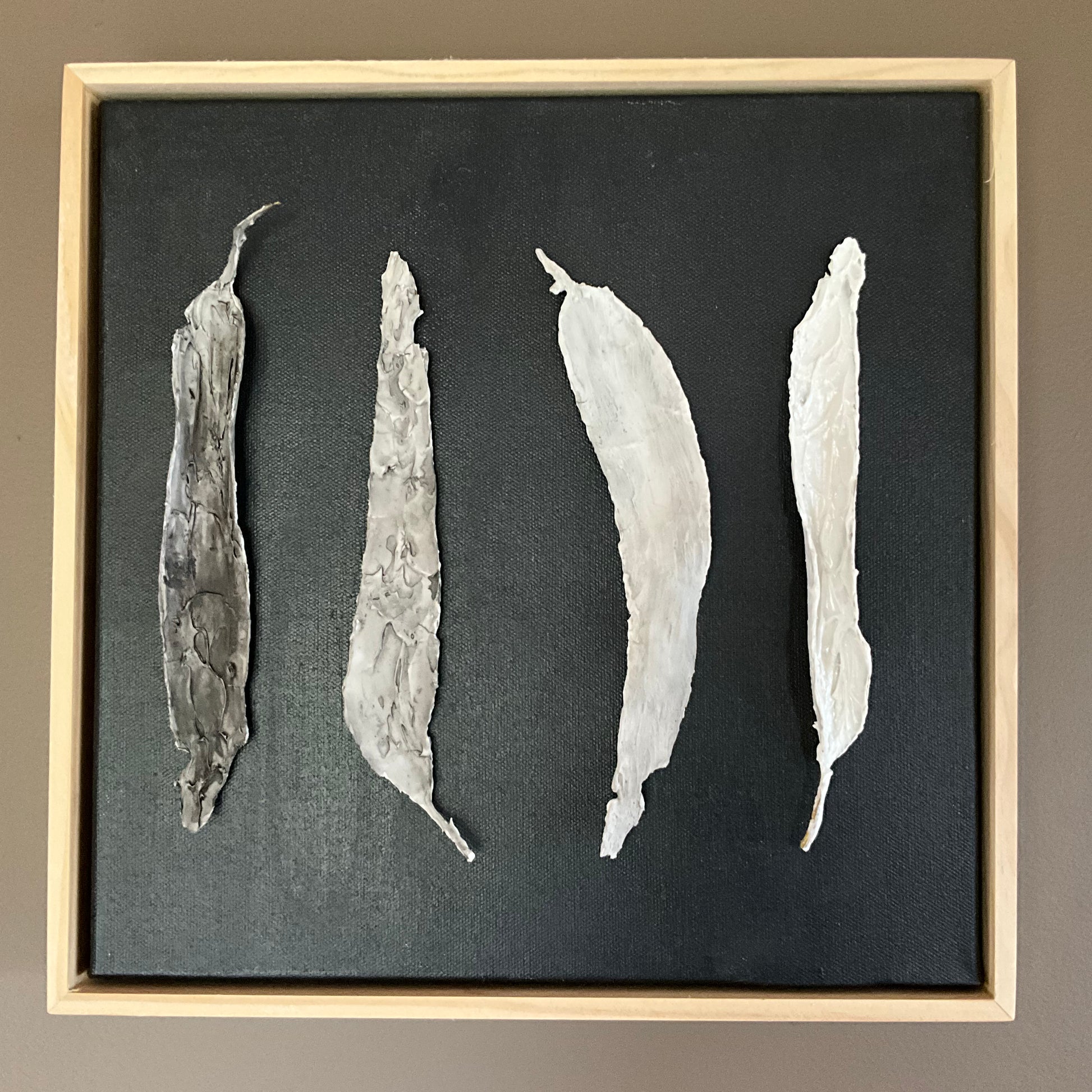 Expertly crafted with real clay leaves on a sleek black canvas timber frame. The Eucalyptus Echoes wall art adds a touch of nature to any living space. Experience the calming effects of eucalyptus leaves in the comfort of your own home.